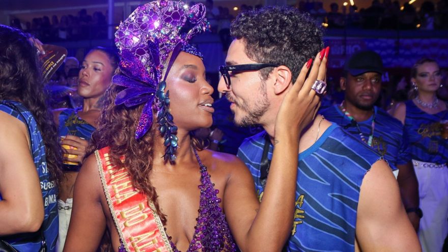 4 de 6Iza beija o namorado, o ator João Vitor Silva, na Marquês de Sapucaí, no Rio • Dilson Silva/Agnews